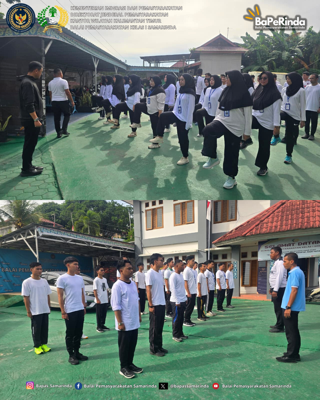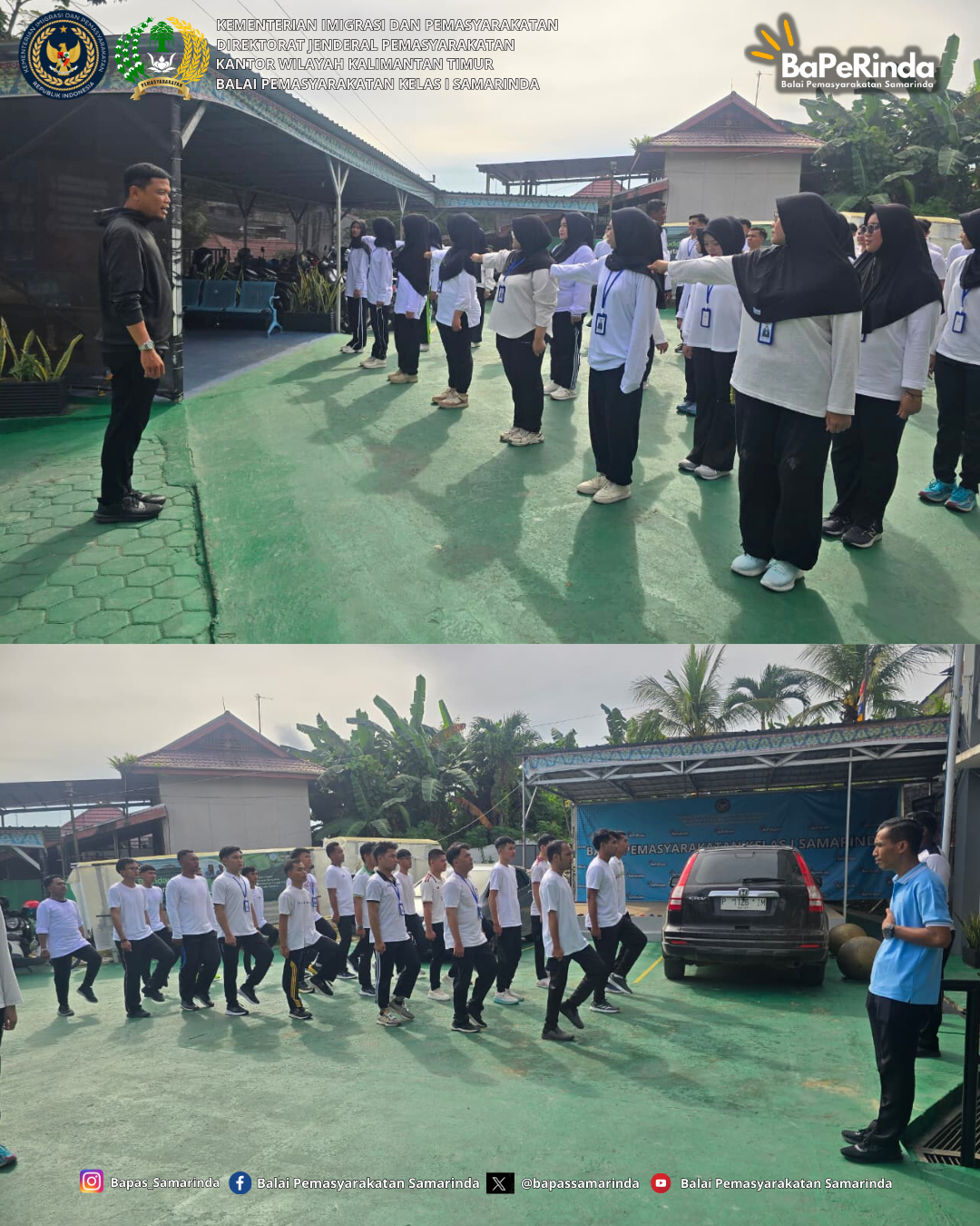 Samarinda (25/11/25) — Balai Pemasyarakatan Kelas I Samarinda melaksanakan kegiatan yang aktif dan produktif bersama peserta Program Pemagangan. Kegiatan ini tidak hanya bertujuan untuk menjaga kebugaran fisik, tetapi juga menanamkan disiplin, tanggung jawab, dan kebiasaan positif yang mendukung pengembangan diri peserta.