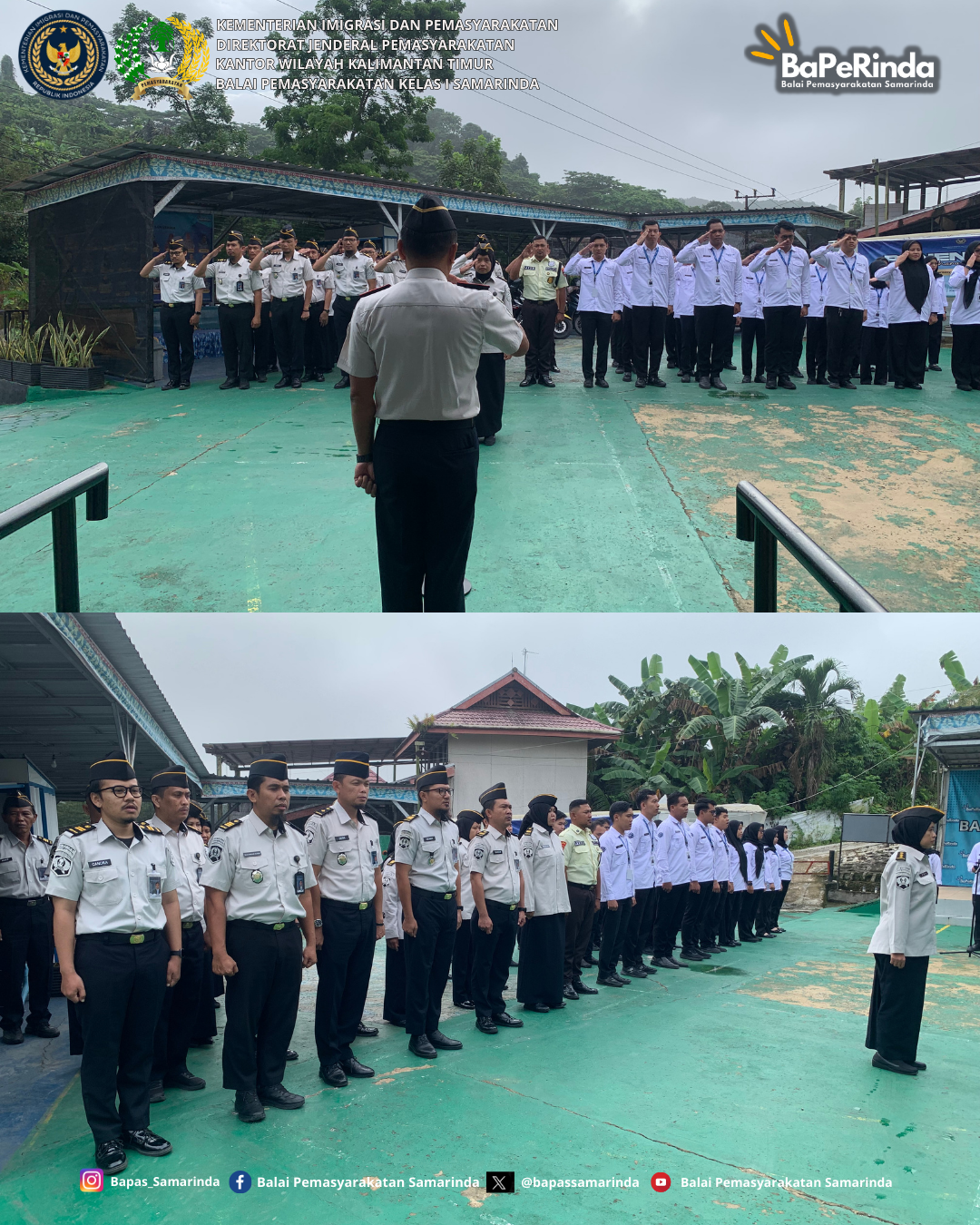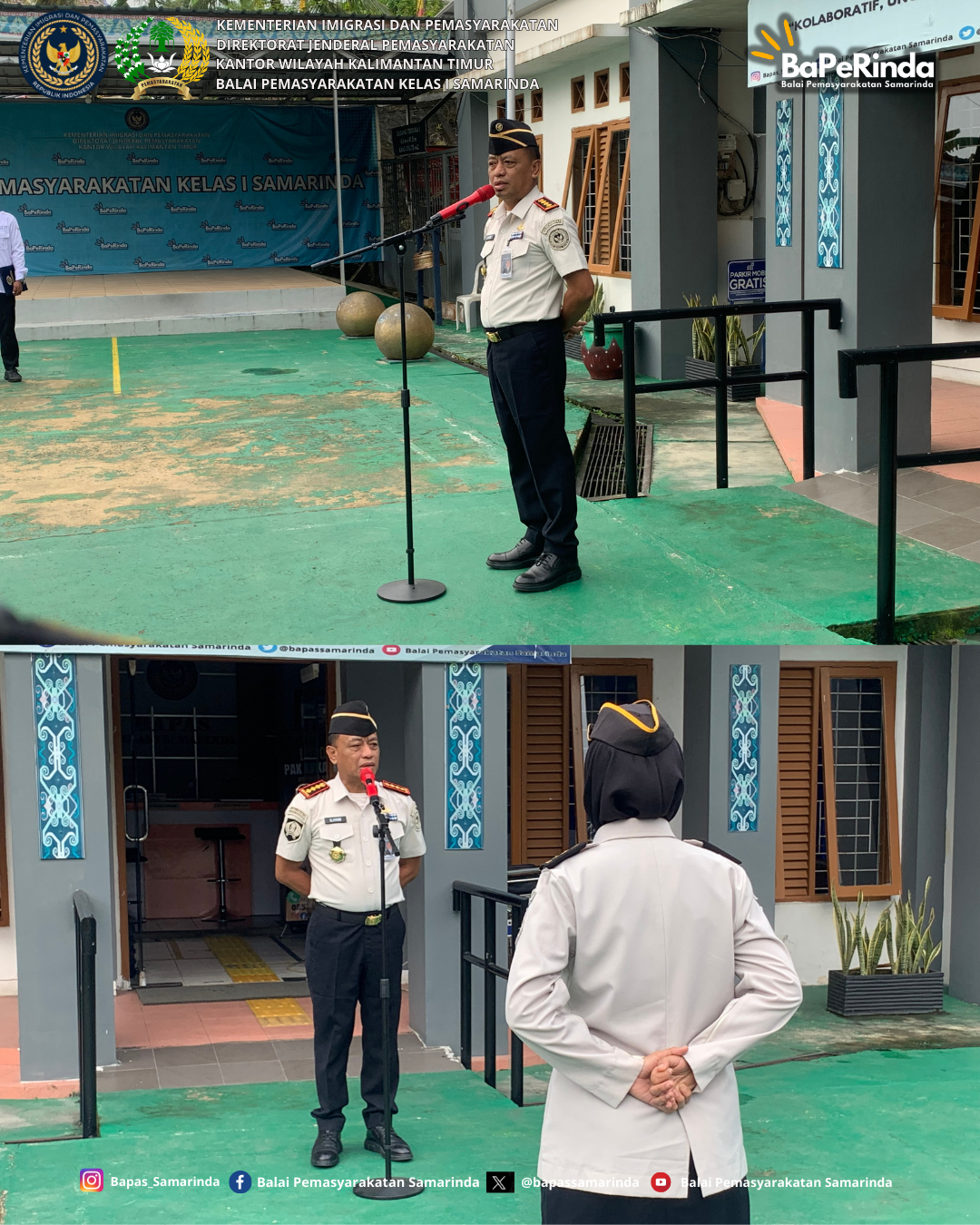 Samarinda (16/03/2026) – Kepala Balai Pemasyarakatan (Bapas) Kelas I Samarinda memimpin apel pagi yang diikuti oleh seluruh pegawai di lingkungan Bapas Samarinda. Dalam arahannya, Kabapas mengingatkan para pegawai untuk tetap menjaga ketertiban dan kebersihan lingkungan kantor menjelang libur panjang, serta memastikan seluruh fasilitas kantor dalam kondisi aman sebelum ditinggalkan.