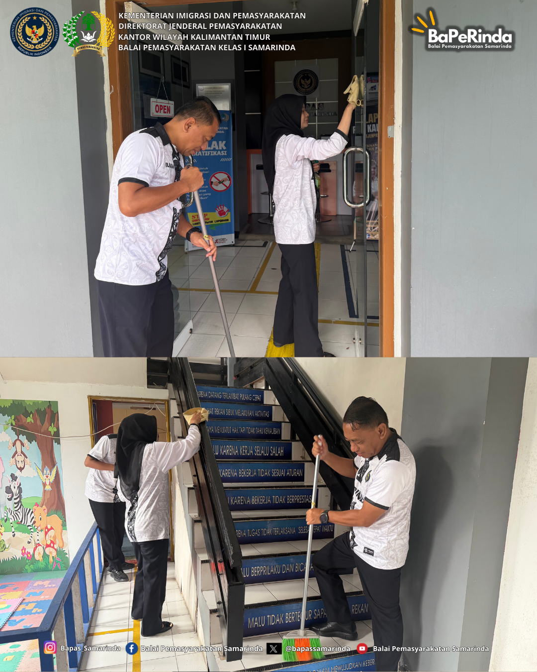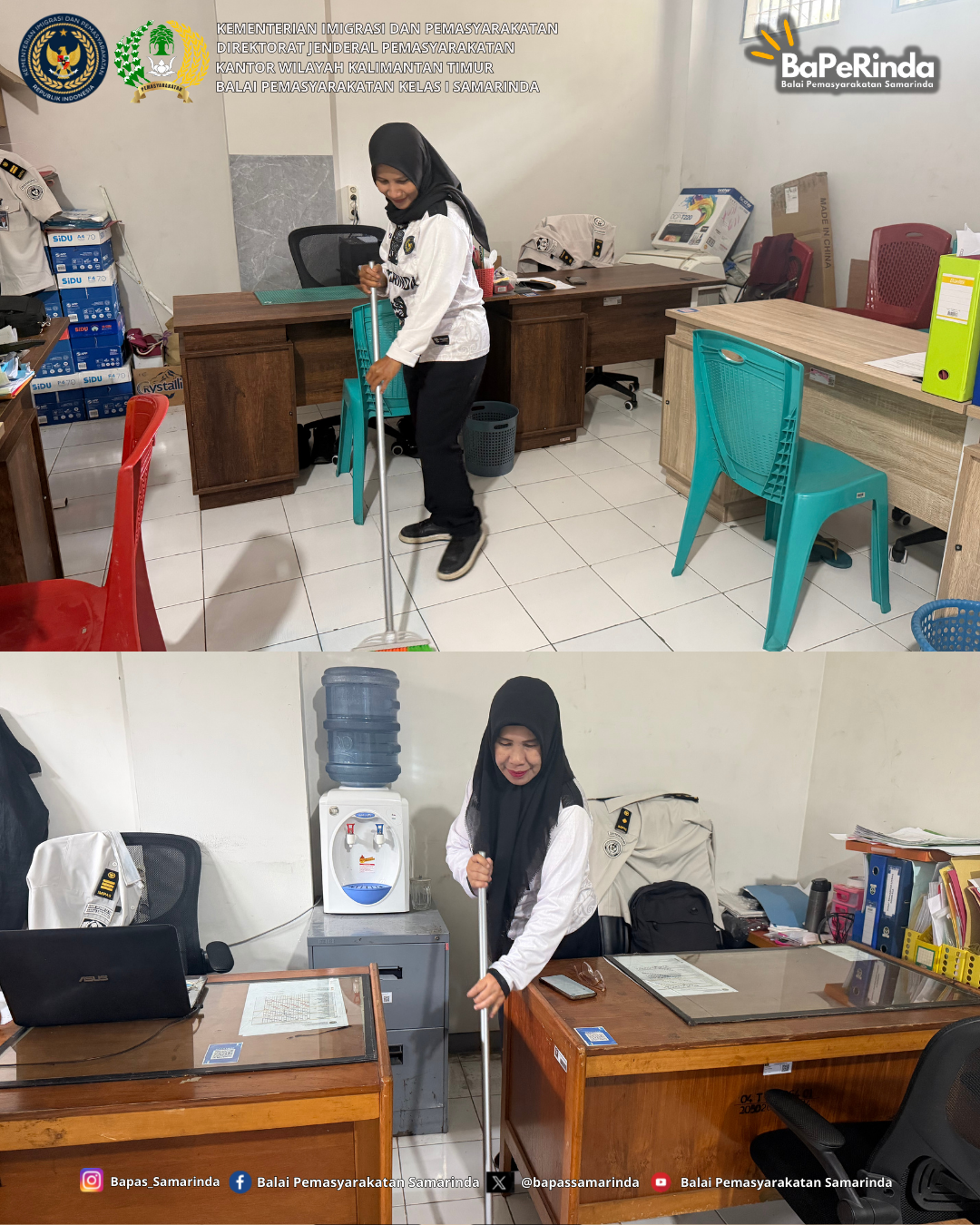 Kegiatan bersih-bersih dilakukan dengan membersihkan area halaman, ruang kerja, serta fasilitas di lingkungan kantor Bapas Samarinda. Melalui kegiatan ini diharapkan dapat menciptakan lingkungan kerja yang lebih rapi, sehat, dan nyaman sehingga mampu mendukung pelaksanaan tugas dan pelayanan kepada masyarakat.