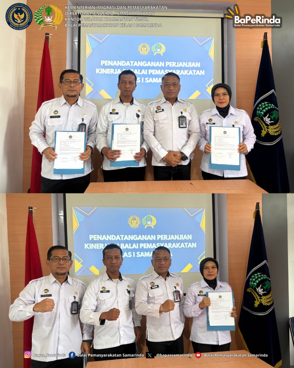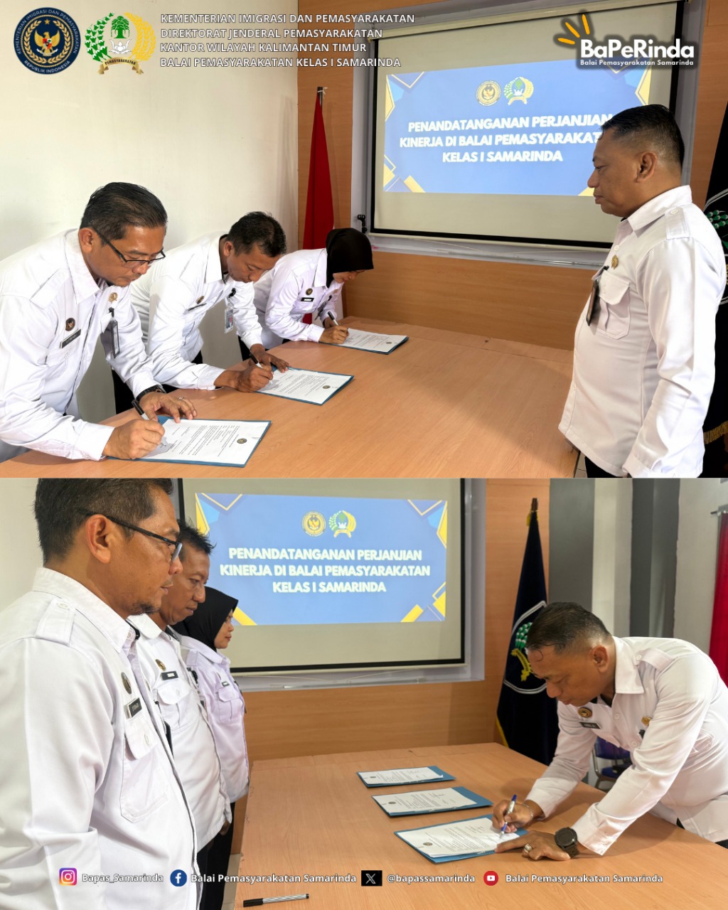 Samarinda, (25/11/2025) – Balai Pemasyarakatan (Bapas) Kelas I Samarinda menggelar kegiatan Penandatanganan Perjanjian Kinerja Tahun 2025 sebagai bentuk komitmen dalam mewujudkan tata kelola pemerintahan yang akuntabel dan berorientasi hasil.