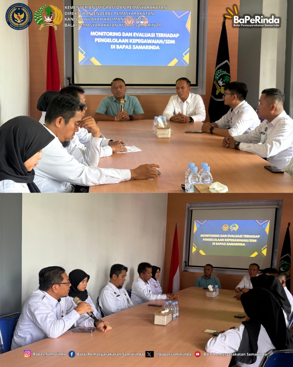 Samarinda, (25/11/2025) – Balai Pemasyarakatan (Bapas) Kelas I Samarinda menerima kunjungan kerja Kepala Bagian Sumber Daya Manusia Direktorat Jenderal Pemasyarakatan (Kabag SDM Ditjenpas), Ardian Nova Christiawan, A.Md.IP., S.Sos., M.Si., dalam rangka pelaksanaan monitoring dan evaluasi (monev) kinerja pengelolaan kepegawaian.