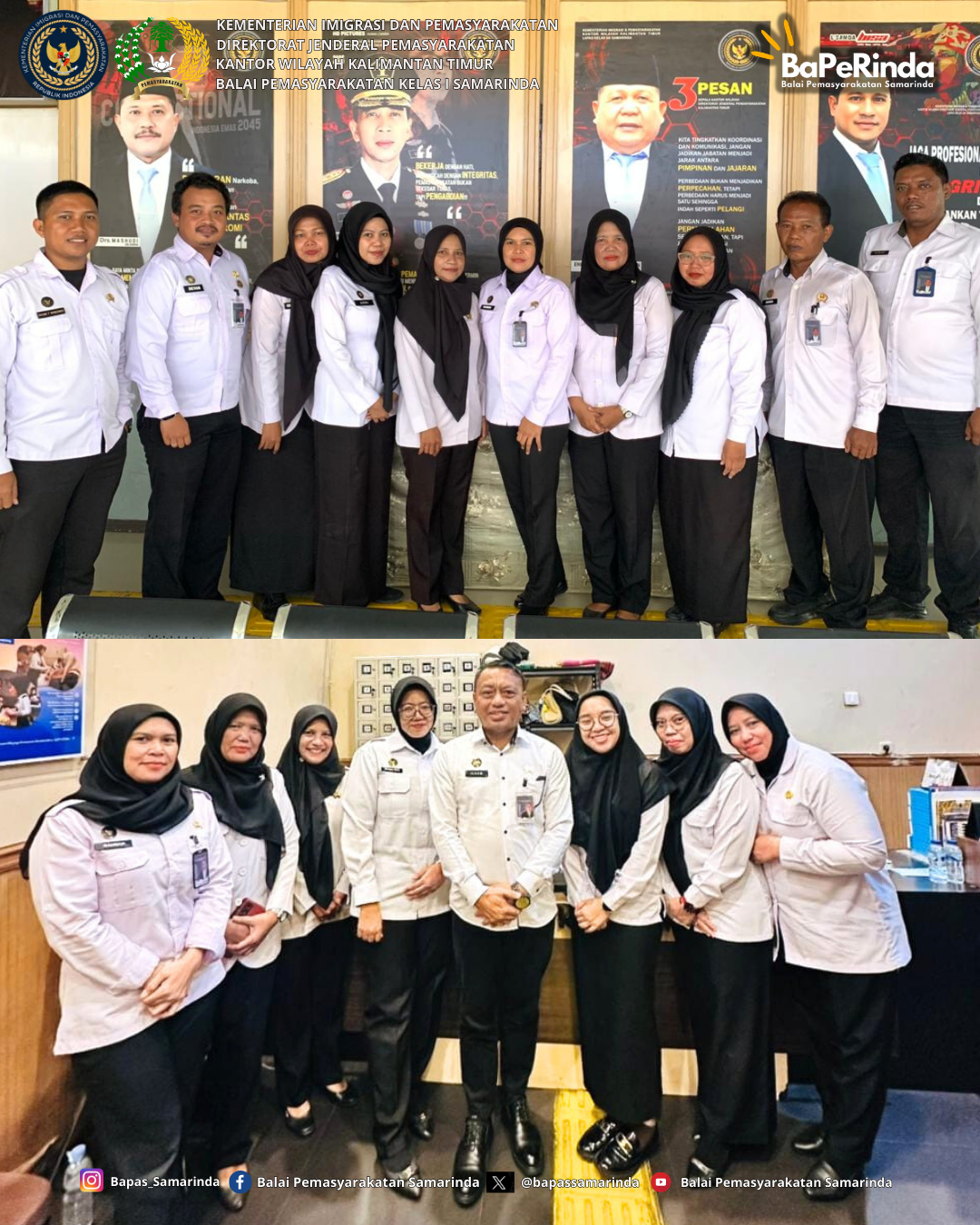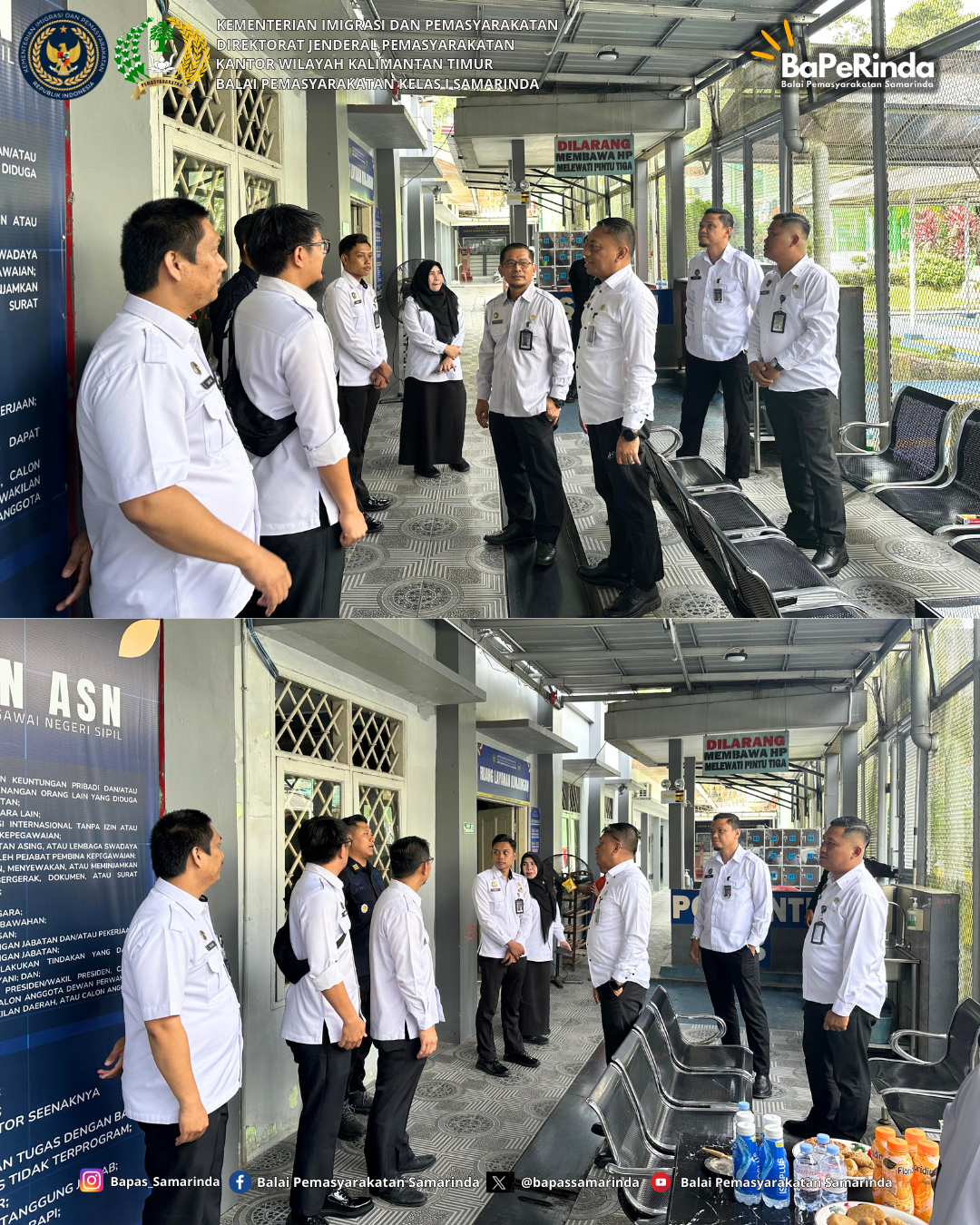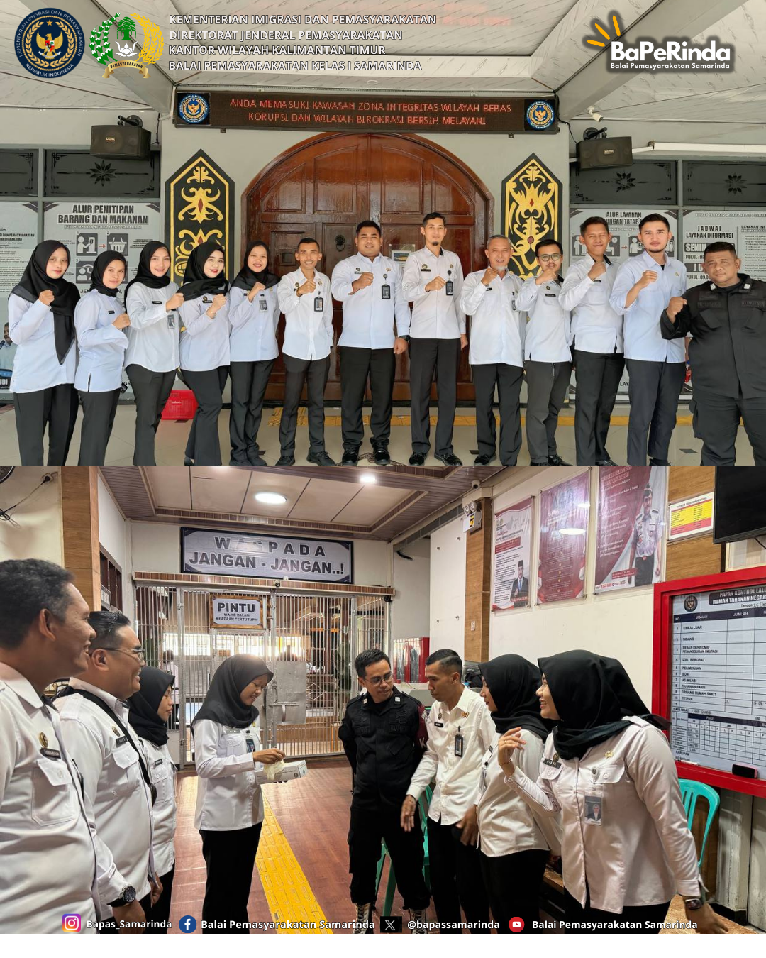 Samarinda (25/12/25) - Kepala Balai Pemasyarakatan (Kabapas) Kelas I Samarinda melaksanakan kegiatan monitoring terhadap personil Bantuan Kendali Operasi (BKO) Pengamanan Natal dan Tahun Baru (Pam Nataru) yang bertugas di Lembaga Pemasyarakatan (Lapas) dan Rumah Tahanan Negara (Rutan) di wilayah Kota Samarinda. Kegiatan ini bertujuan untuk memastikan kesiapsiagaan dan optimalisasi pengamanan selama perayaan Natal dan Tahun Baru agar situasi tetap aman dan kondusif.