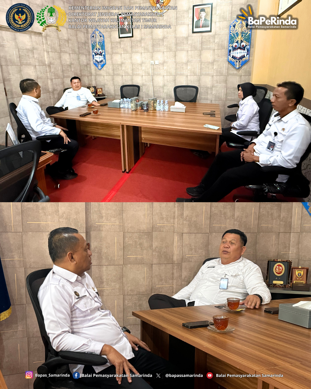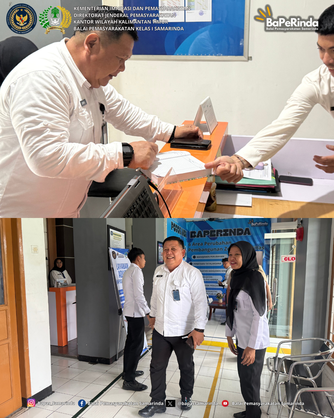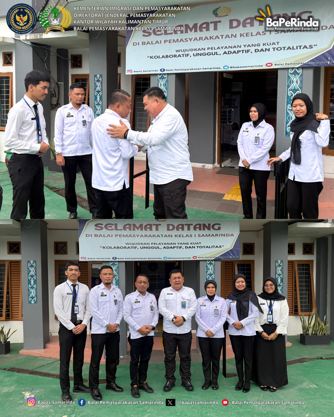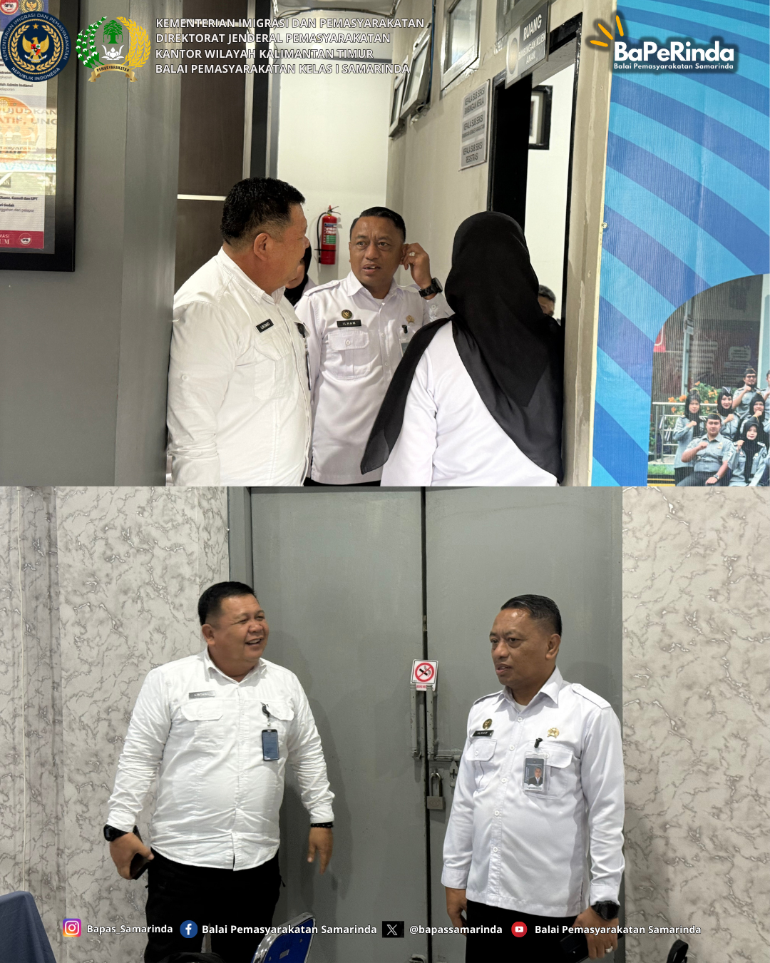 Samarinda (03/12/25) Kepala Kantor Wilayah Direktorat Jenderal Pemasyarakatan Kalimantan Timur melakukan kunjungan kerja ke Balai Pemasyarakatan (Bapas) Kelas I Samarinda sebagai bagian dari agenda monitoring dan evaluasi pelaksanaan tugas pemasyarakatan. Kunjungan ini disambut langsung oleh Kepala Bapas Samarinda beserta jajaran, yang memaparkan berbagai program pembimbingan, pengawasan, dan inovasi layanan yang saat ini berjalan di lingkungan Bapas.