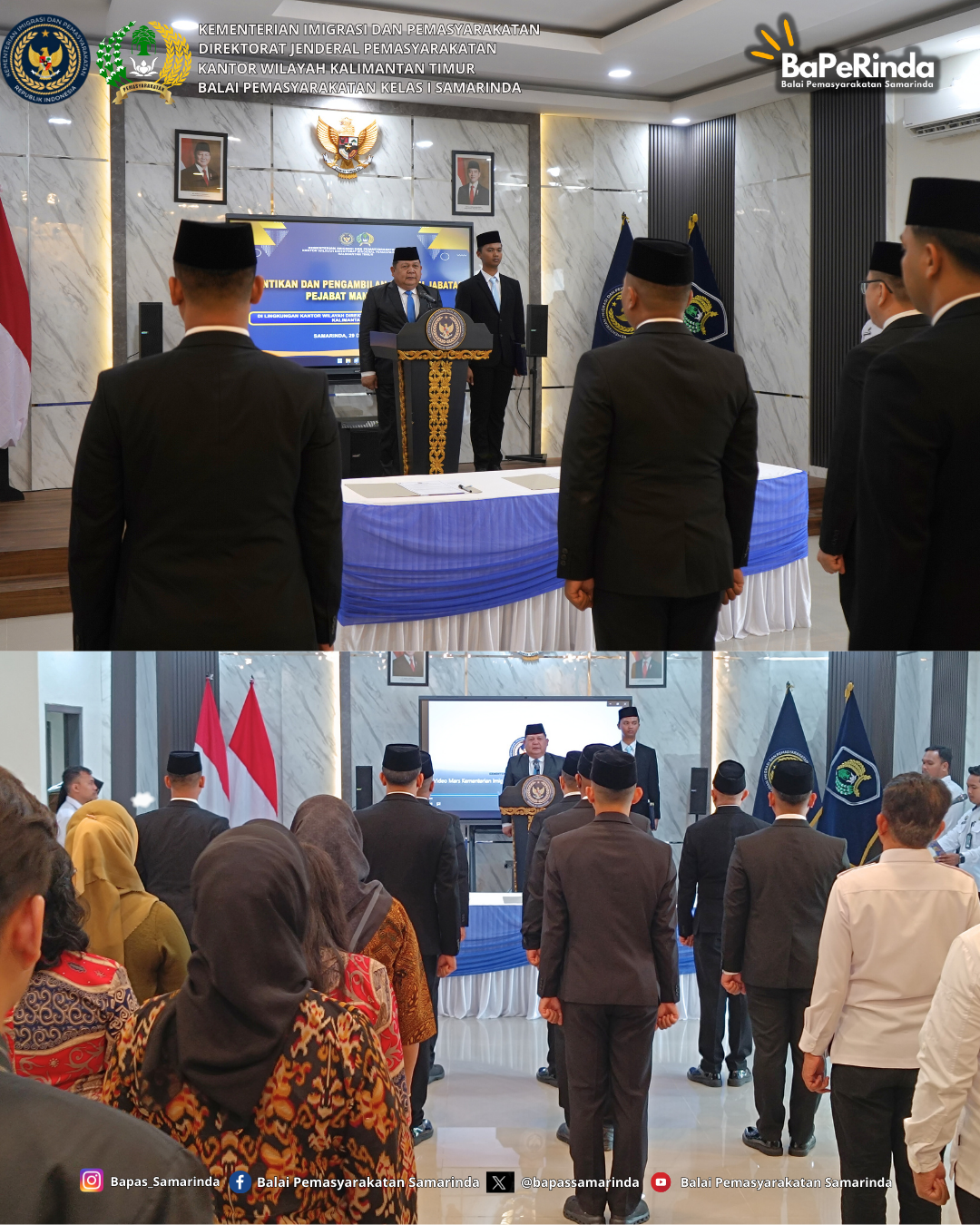 29 Desember 2025 - Kakanwil (Kepala Kantor Wilayah) Ditjenpas (Direktorat Jenderal Pemasyarakatan) Kaltim (Kalimantan Timur), Endang Lintang Hardiman lantik 8 orang pejabat manajerial yang selanjutnya akan melaksanakan tugas di Kanwil Ditjenpas Kaltim dan Rutan (Rumah Tahanan Negara), Lapas (Lembaga Pemasyarakatan) serta Bapas (Balai Pemasyarakatan). Dalam rangkaiannya turut serta dilaksanakan Serah Terima Jabatan Kepala Unit Pelaksana Teknis (KaUPT) Pemasyarakatan.