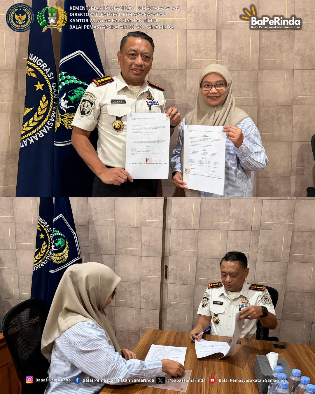 Samarinda, (15/01/2026) – Kepala Balai Pemasyarakatan (Kabapas) Kelas I Samarinda melaksanakan penandatanganan Perjanjian Kerja Sama (PKS) terkait implementasi Undang-Undang Nomor 1 Tahun 2023 tentang Kitab Undang-Undang Hukum Pidana (KUHP). Penandatanganan PKS tersebut dilakukan secara desk to desk dengan Pemerintah Kabupaten Kutai Timur sebagai wujud penguatan koordinasi dan sinergi antarinstansi dalam mendukung pelaksanaan kebijakan pemasyarakatan di daerah.