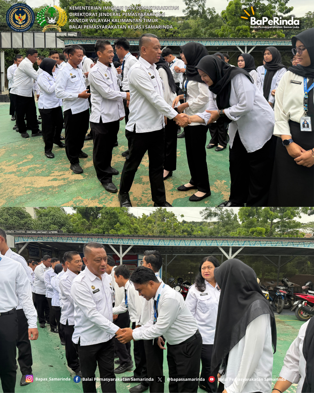 Samarinda (18/02/26) - Suasana bulan suci Ramadan 1447 H tidak mengurangi semangat jajaran pegawai Balai Pemasyarakatan Kelas I Samarinda dalam menjalankan tugas dan tanggung jawabnya. Hal tersebut terlihat dari tetap dilaksanakannya apel pagi secara rutin di halaman kantor, sebagai bentuk komitmen terhadap kedisiplinan dan integritas kerja. Meski tengah menjalankan ibadah puasa, seluruh pegawai mengikuti apel dengan penuh khidmat dan semangat.