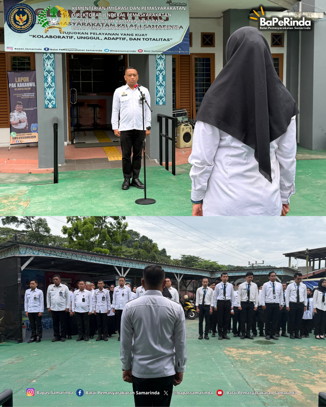Apel pagi dipimpin langsung oleh Kepala Bapas Samarinda, M. Ilham Agung Setyawan. Dalam arahannya, beliau menekankan pentingnya menjaga profesionalisme dan kualitas pelayanan kepada masyarakat, khususnya kepada klien pemasyarakatan. Ia juga mengingatkan agar momentum Ramadan dijadikan sebagai sarana meningkatkan keikhlasan, kesabaran, serta etos kerja dalam memberikan pelayanan terbaik.